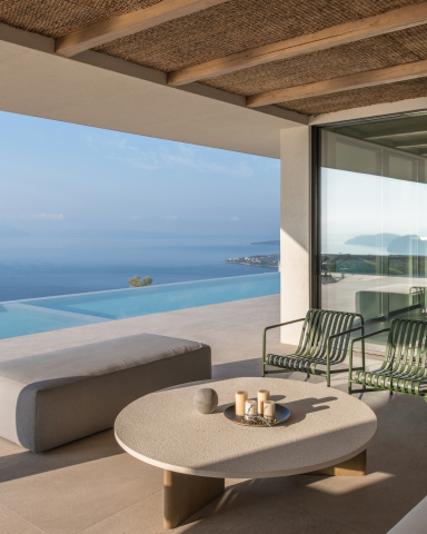 A 15-minute walk from the town of Lipari, Posidonia offers guests the tranquility of a remote island with easy access to local colour, cuisine and conveniences. Overlooking the sea across to a nearby historic castle, Posidonia accommodates 14 guests across seven bedrooms and bathrooms. An enticing, shady terrace surrounds the villa’s main floor, perfect for guests who wish to embrace Italian al fresco living and ideal for soaking up the panoramic views. Walking down the curved steps, guests will find themselves at the pool, encircled by fragrant foliage and carefully cultivated greenery and truly in a world of their own.