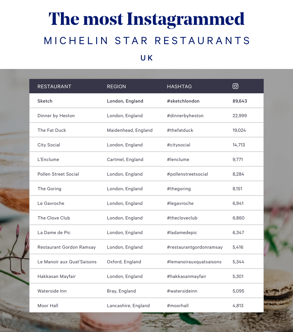 Instagram’s picks for the best Michelin-starred restaurants in the UK