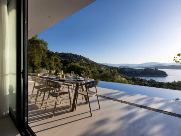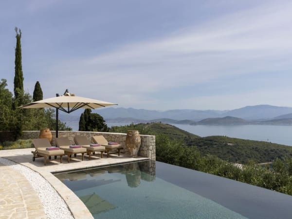 Set amidst 1.5 acres of graceful cypresses, wise old olive trees, exotic palms, fragrant pines, colourful blooms and manicured emerald lawns, Ophira is a beautifully appointed villa with pedigree, space aplenty, and an irresistible pool. The serene views over Gouvia Bay and the evocative white chapel of Ypapanti are hypnotic, and the numerous terraces offer the perfect vantage point from which to take in this most Greek of scenes.