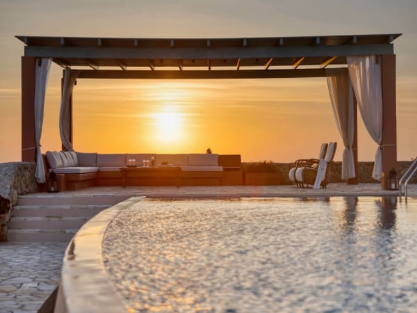 Gazing out from Mythos's plunge pool across the towering headland on which it sits, one has the sensation of being an Olympian god. The waters of the Ionian sparkle blue out to the horizon, and far down below are the golden sands of legendary Myrtos beach. These stunning vistas are only part of the story, however, as Mythos also offers guests architectural interest, luxuriously crafted accommodation and inspiring interior design.