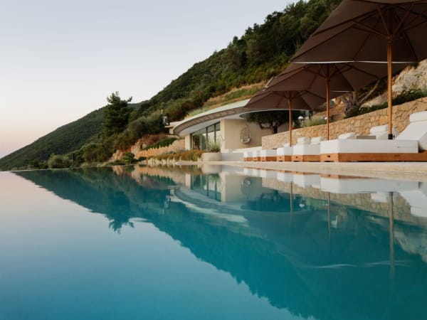 Glimpsed from the sea below, Thyta House’s ephemeral elliptical forms and gracefully curvaceous motifs melt away into the emerald hillside from which it emerges. Native flora camouflages its roofs, further obscuring its presence and emphasising its symbiotic relationship with the surrounding landscape. Understated and inconspicuous it may be, but Thyta House is also an ingenious and remarkable gem of contemporary architecture that delights at every turn.
