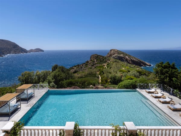 The creation of a renowned Greek architect, Fanya is a scrupulously designed villa that rises with disarming discretion from its seafront surroundings, a stone and earthy-hued extension of the terrain topped with low-lying grasses and fragrant shrubs. This sense of natural harmony is further enhanced by the 16m-long infinity pool and the sea, the former seemingly an homage to the irresistible sparkling blues of the latter.