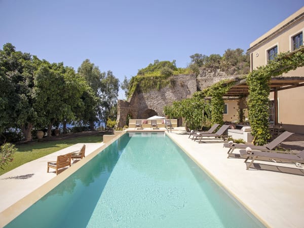 Sitting in a privileged position overlooking the sea and the historic castle and harbour of Lipari town, Posidonia is a typically Aeolian villa offering space, hypnotic views and that most rare of facilities on the islands: a stunning private pool.